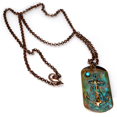 Men's 2023 Anchors Aweigh Verdigris Patina Dog Tag Anchor Pendant Necklace - Turquoise