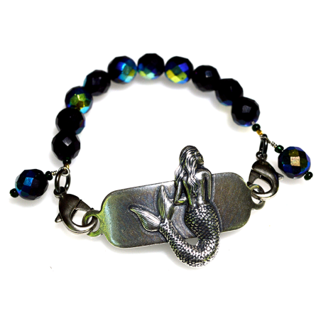 Antiqued Silver Brass Mermaid Interchangeable Rockband Bracelet