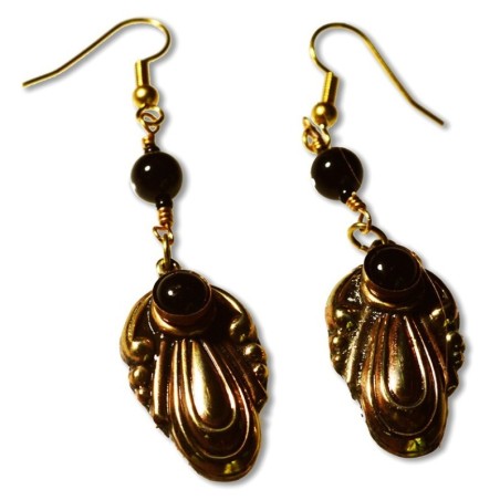 Mirror Antique Brass Art Deco Dangle Earrings - Onyx