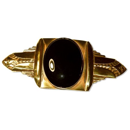 Mirror Antique Brass Art Deco Belt Buckle - Black Onyx