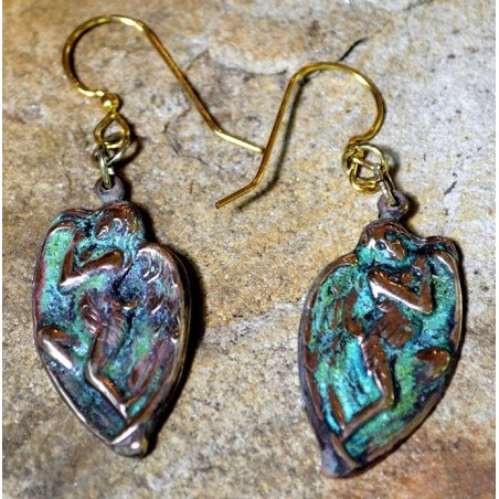 Olive Patina Brass Winged Angel Of Hope Dangle Earrings