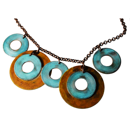 Bohemian Chic Geometry Line Verdigris and Earth Patina Circle Necklace