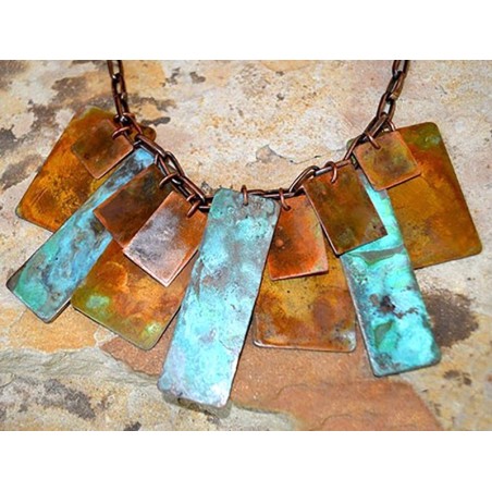 Verdigris and Earth Patina Solid Brass Bohemian Chic Elaborate Multi-piece Rectangles Necklace