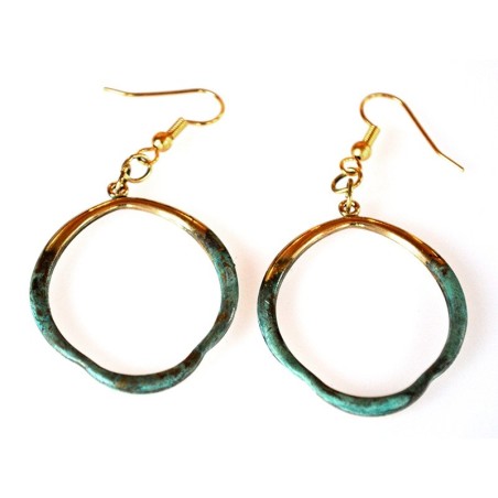 Verdigris Patina Solid Brass Large Asymmetrical Open Sculptural Circle Dangle Earrings
