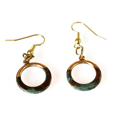 Verdigris Patina Solid Brass Small Asymmetrical Open Sculptural Circle Dangle Earrings
