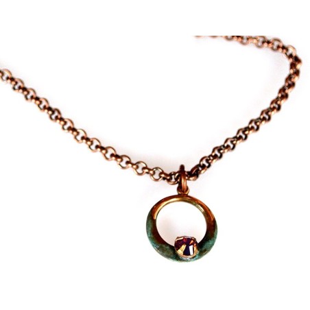 Verdigris Patina Solid Brass Small Asymmetrical Sculptural Circle Pendant - Violette Opal European Crystal