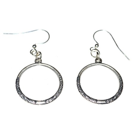 Mirror Silver Antiqued Brass Small Decorative Hoop Dangle Earrings