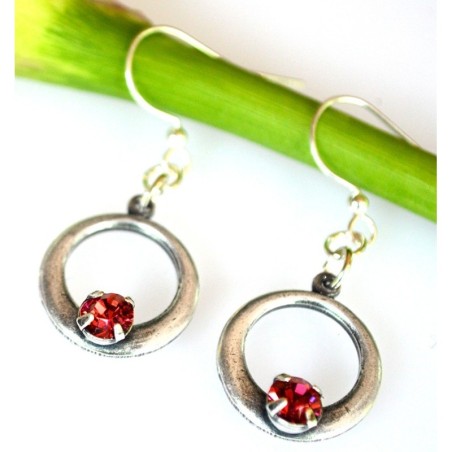 • Mirror Antiqued Silver Brass Small Asymmetrical Sculptural Circle Dangle Earrings - European Crystals