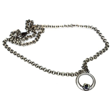 Mirror Antiqued Silver Brass Small Asymmetrical Sculptural Circle Pendant - European Crystal
