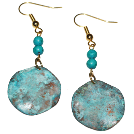 2023 Modern Southwest Verdigris Patina Brass Round Dangle Earrings - Turquoise