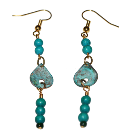 2023 Modern Southwest Verdigris Patina Brass Teardrop Dangle Earrings - Turquoise