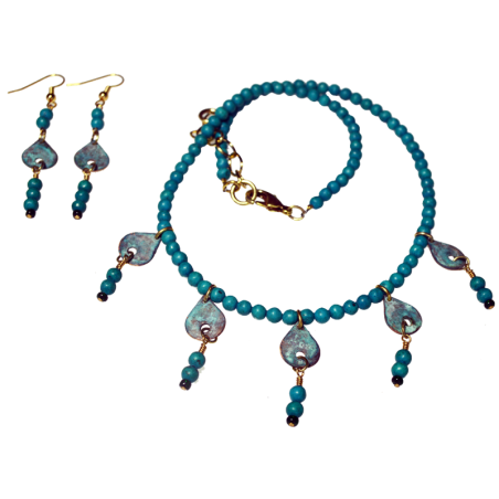 2023 Modern Southwest Verdigris Patina Brass Teardrop Dangle Necklace and Earring Combination - Turquoise