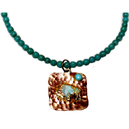 2023 Verdigris Patina and Copper Buffalo Necklace - Genuine Turquoise