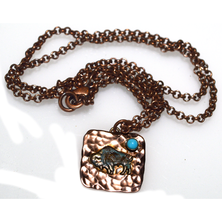 2023 Verdigris Patina and Copper Chain Buffalo Necklace - Genuine Turquoise