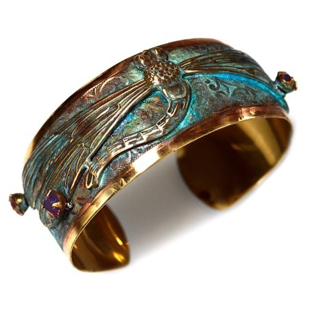 Verdigris Patina Solid Brass Decorative Dragonfly Cuff - European Crystals