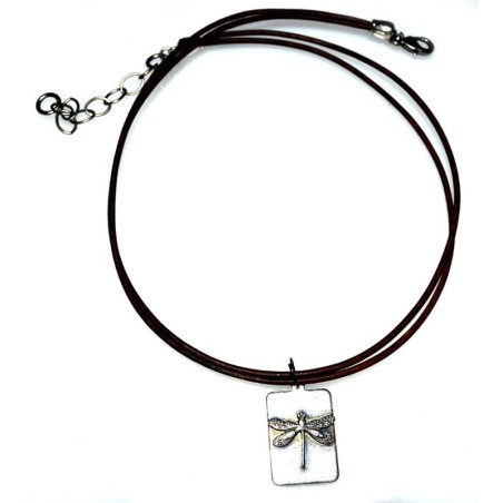 Antiqued Silver Solid Brass Dragonfly On Rectangle Pendant
