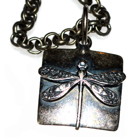 2023 Antique Silver Plated Brass Dragonfly Pendant - Chain