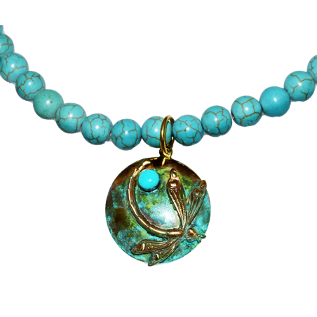 Elaine Coyne Collectible Artwear Patina Brass Dragonfly Necklace - Turquoise