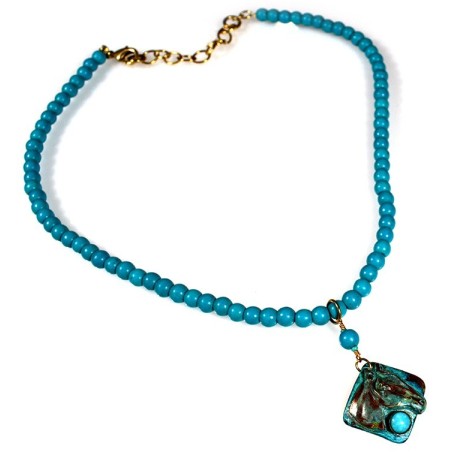 Verdigris Patina Brass Horse Head Necklace - Turquoise