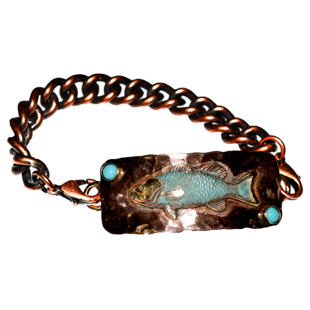 2023 Copper and Verdigris Patina Fishing Lure Rockband - Turquoise