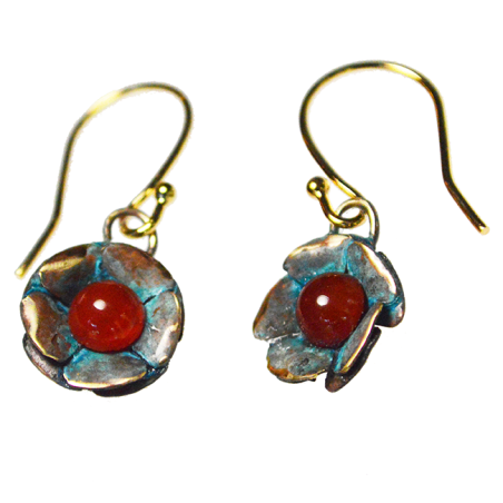 Olive Patina Sculptural Floral Earrings - Carnelian