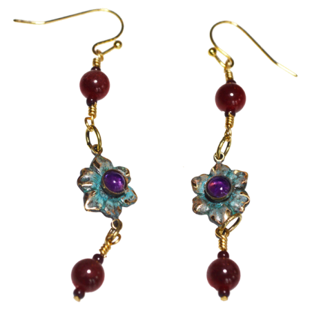 Delicacy Floral Earrings - Amethyst and Double Garnet