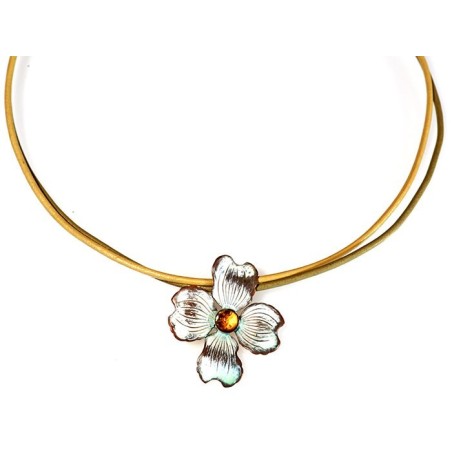 • White Chocolate Patina Brass Large Dogwood Flower Pendant
