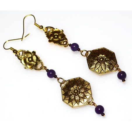 Antiqued Gold Solid Brass Floral Dangle Earrings