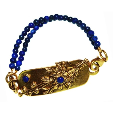 Antique Gold Forever Floral Rockband - Lapis Lazuli