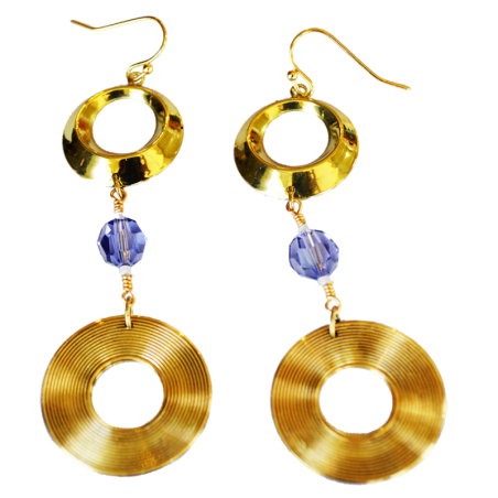 Hollywood Chic 2022 Mirror Brass Double Rings - Tanzanite European Crystals