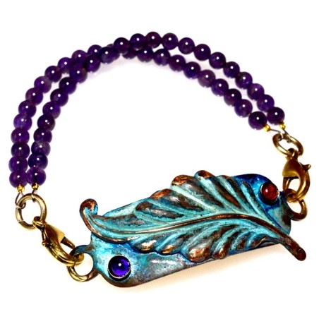 Verdigris Patina Flowing Leaf Rockband Bracelet - Dual Strand Beaded Strap
