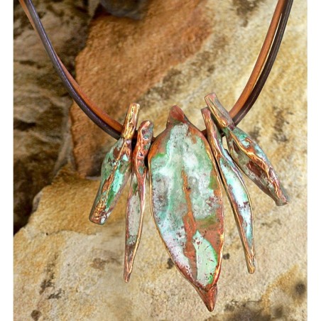 Verdigris Patina Lost Wax Cast Brass Botanicals Five Piece Graduated Necklace