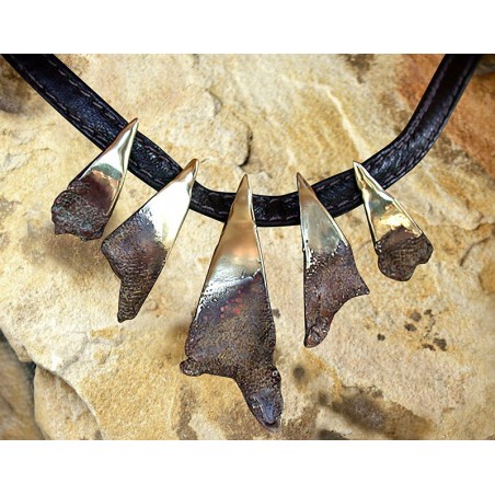 Lost Wax Cast Earth Patina Brass Textured Five Piece Graduated Necklace