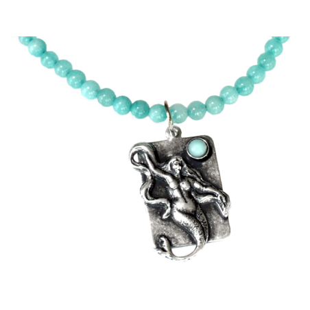 Antique Silver Mythical Mermaids Necklace - Light Amazonite