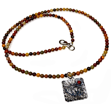 Antique Silver Plated Brass Buffalo Necklace - Jasper