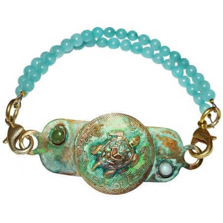 Verdigris Patina Round Turtle Double Strand Rockband - Amazonite and Jade