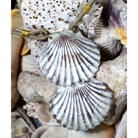 White Chocolate Patina Brass Overlapping Scallop Shell Pendant