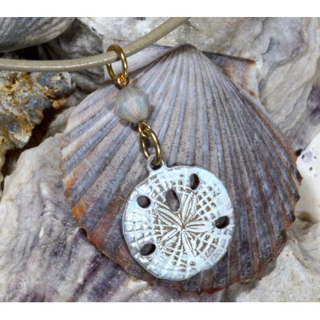 White Chocolate Patina Brass Sand Dollar Pendant - European Crystals