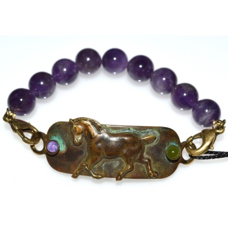 Earth Patina Show Horse Rockband - Charoite, Jade, Amethyst Beading