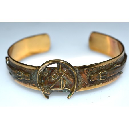 Earth Patina Horse in Horseshoe and Stirrup Cuff Bracelet