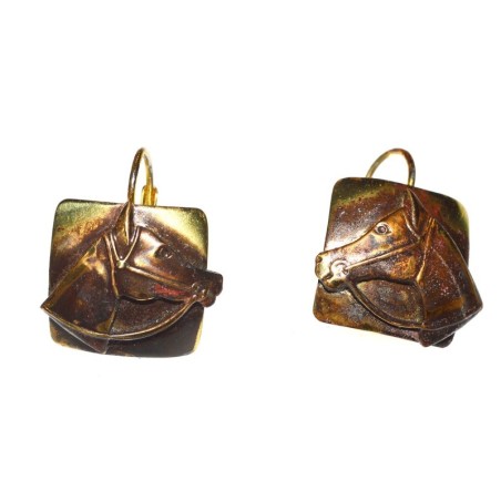 Earth Patina Brass Horse Head on Square Earrings
