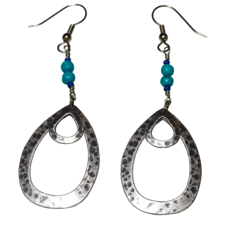 Sante Fe 2023 Antique Silver Plated Brass Double Open Teardrop Dangle Earrings - Turquoise