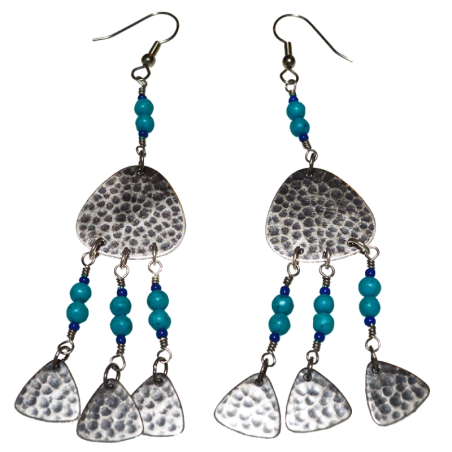 Santa Fe 2023 Antique Silver Plated Brass Triple Dangle Triangle Earrings - Turquoise