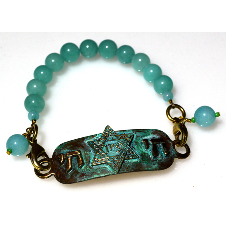 Verdigris Patina Solid Brass Star Of David Rockband - Light Amazonite