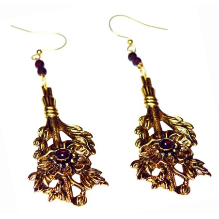 Antique Gold Forever Floral Dangle Earrings - Garnet