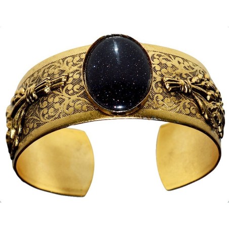 Antique Gold Brass Floral Cuff Bracelet - Navy Goldstone