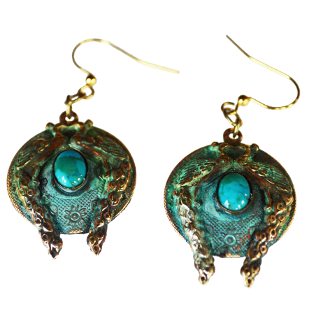 Verdigris Patina Peacocks in Paradise Dangle Earrings - Turquoise