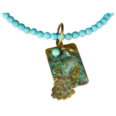 Verdigris Patina Peacocks in Paradise Necklace - Turquoise
