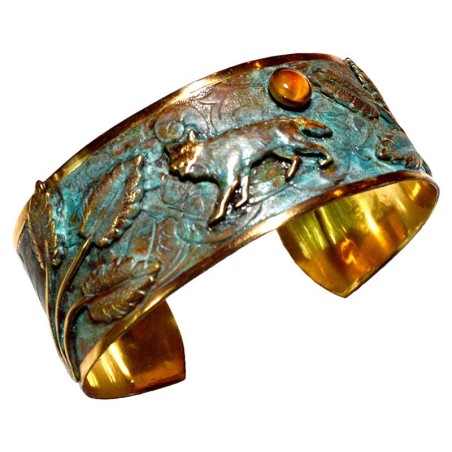 Wolves 2023 Verdigris Patina Wolf in Forest Cuff - Tigers Eye and Jasper