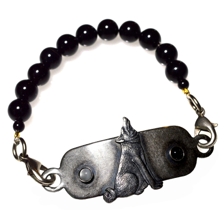 2023 Antique Silver Plated Brass Wolf Rockband - Hematite and Black Onyx